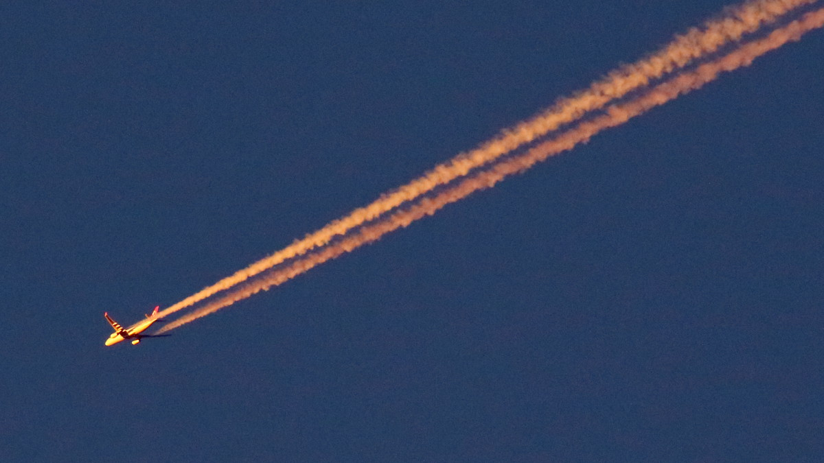 Zum Trost hat dann das Abendlicht für schon rotorange leuchtende Kondensstreifen gesorgt (werden wieder fleißg Chemtrails gesprüht