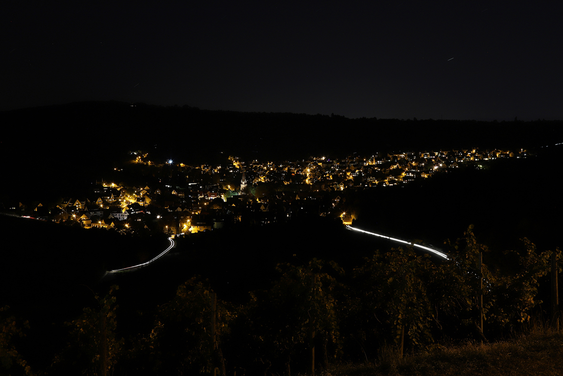 Ich war neulich auf dem Württemberg um das Volksfest Feuerwerk zu fotografieren, das war allerdings nicht so der hammer. Kein Vergleich zu den Flammenden Sternen. So habe ich noch Nachtbilder von Uhlbach und Stuttgart gemacht. Aber zuerst gab es einen schönen Sonnenuntergang: