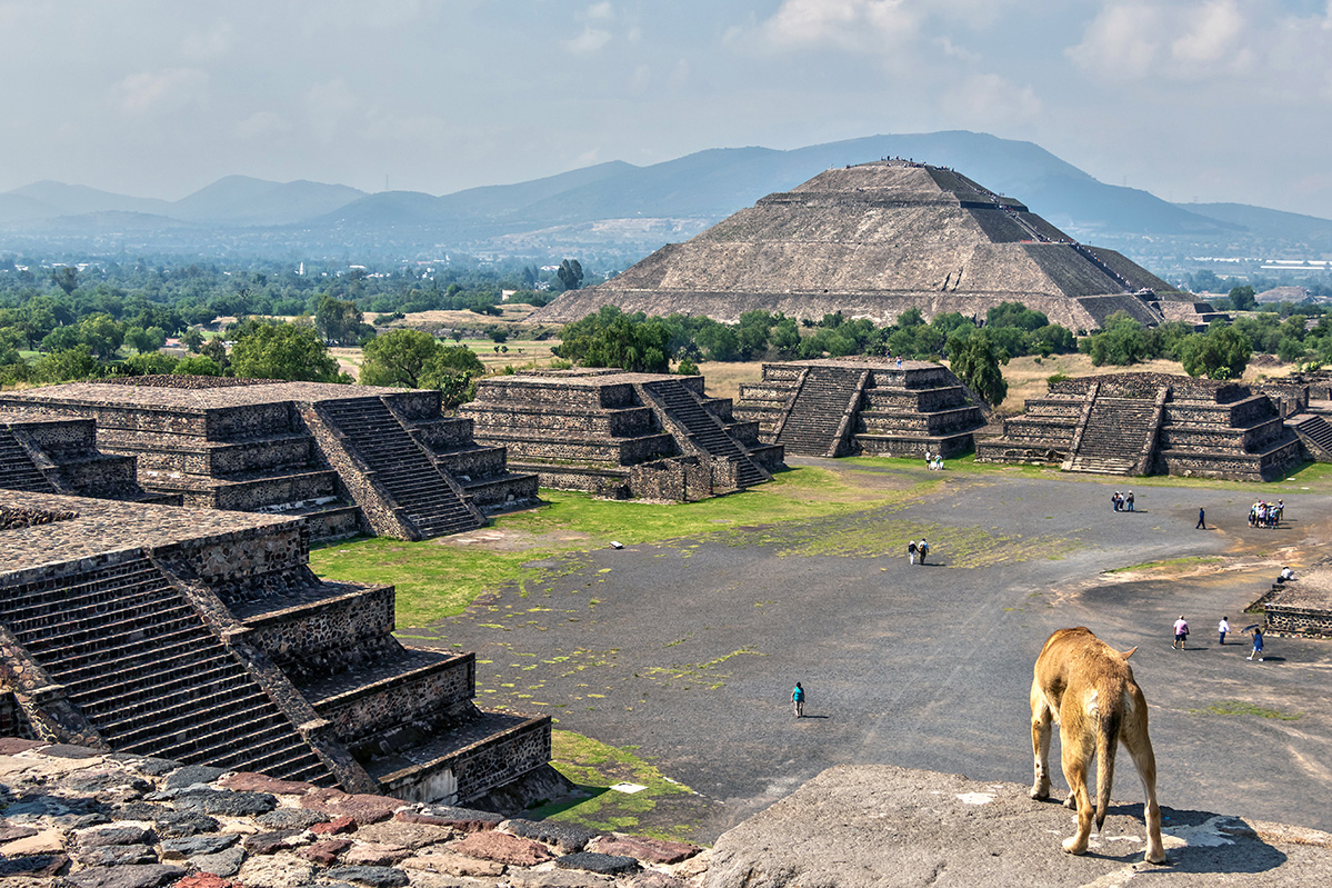 Der Blick hier ist von der Mondpyramide in Richtung der Sonnenpyramide